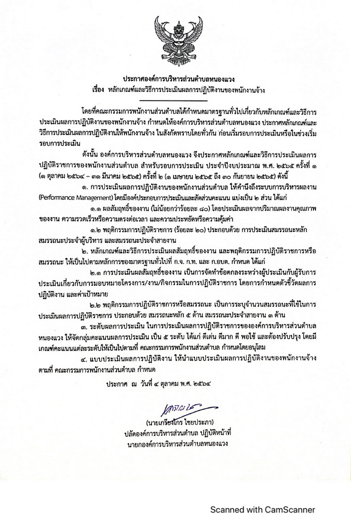 หลักเกณฑ์และวิธีการประเมินผลการปฏิบัติงานของพนักงานส่วนตำบล และพนักงานจ้าง ประจำปีงบประมาณ พ.ศ.2565