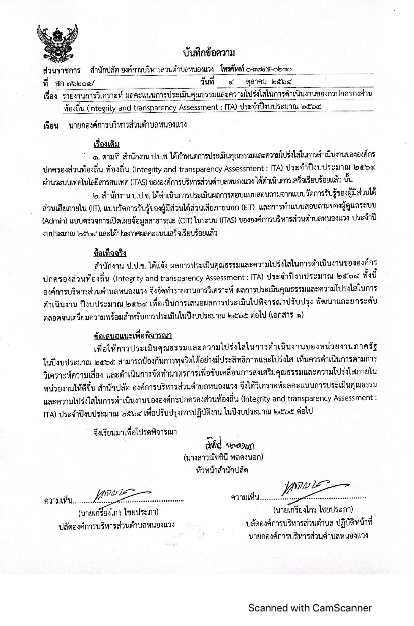 รายงานการวิเคราะห์ผลการประเมินคุณธรรมและความโปร่งใสในการดำเนินงานของหน่วยงานภาครัฐ ประจำปีงบประมาณ พ.ศ.2564